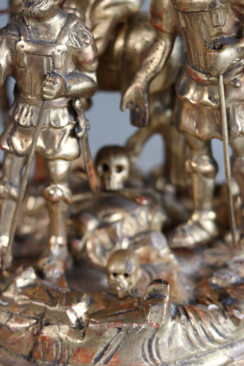 An unusual carved wooden and guilded calvary group