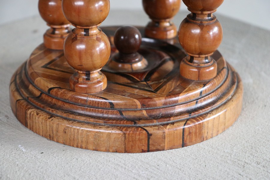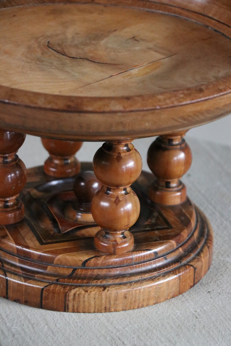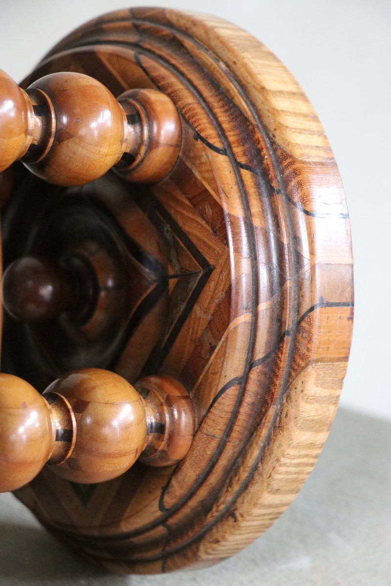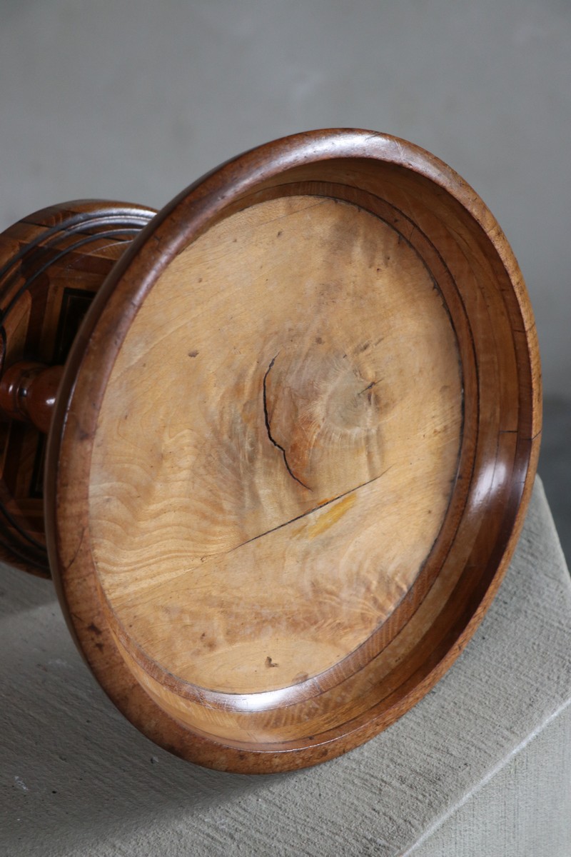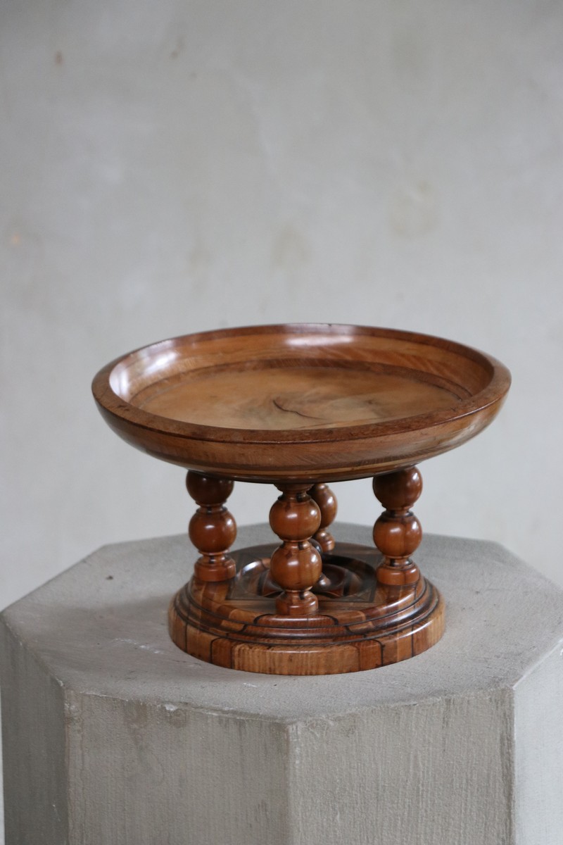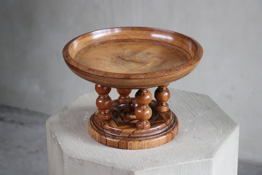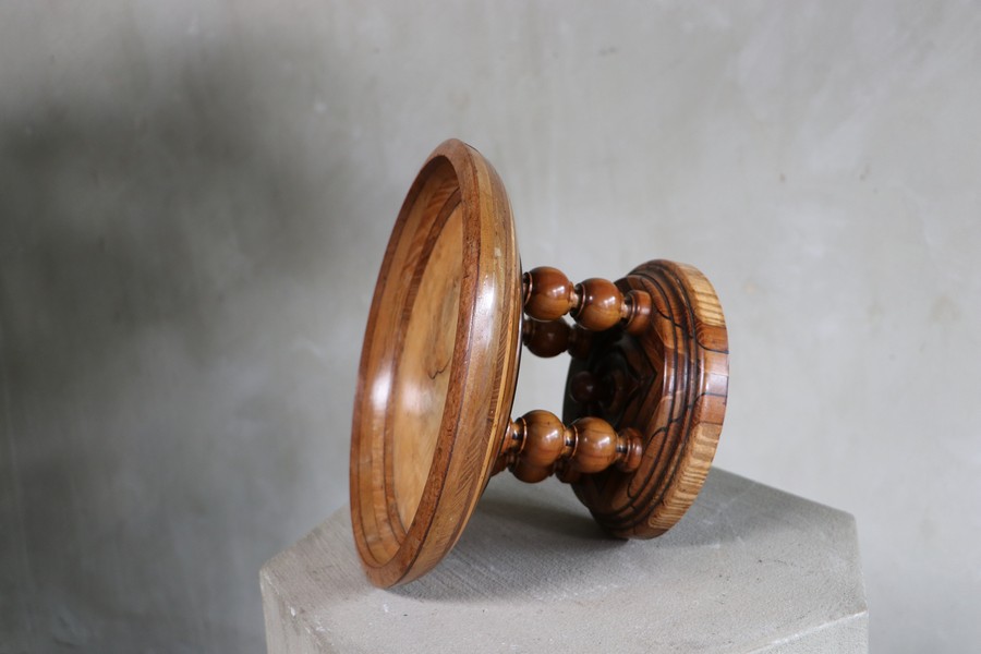 Beautiful wooden tazza/turned wooden bowl on wooden stand.