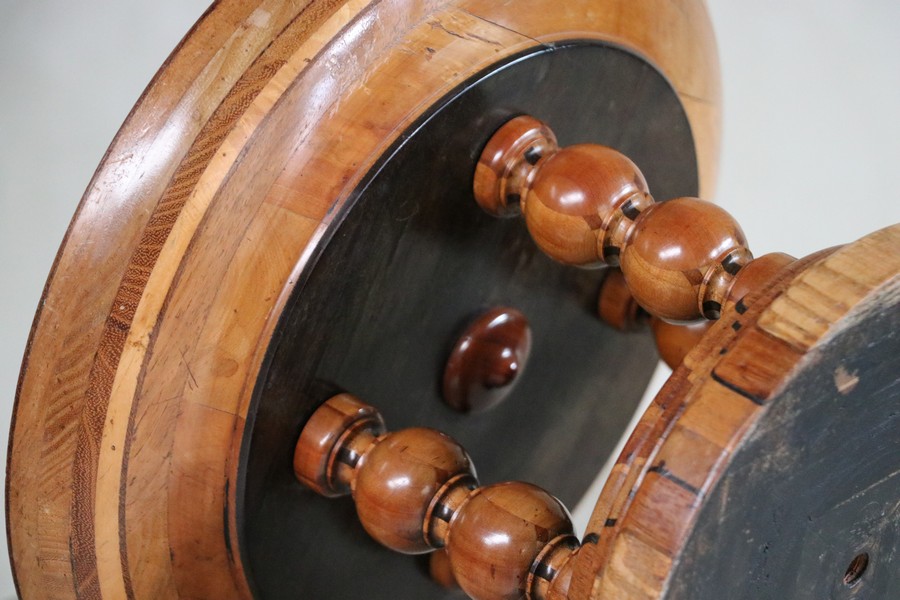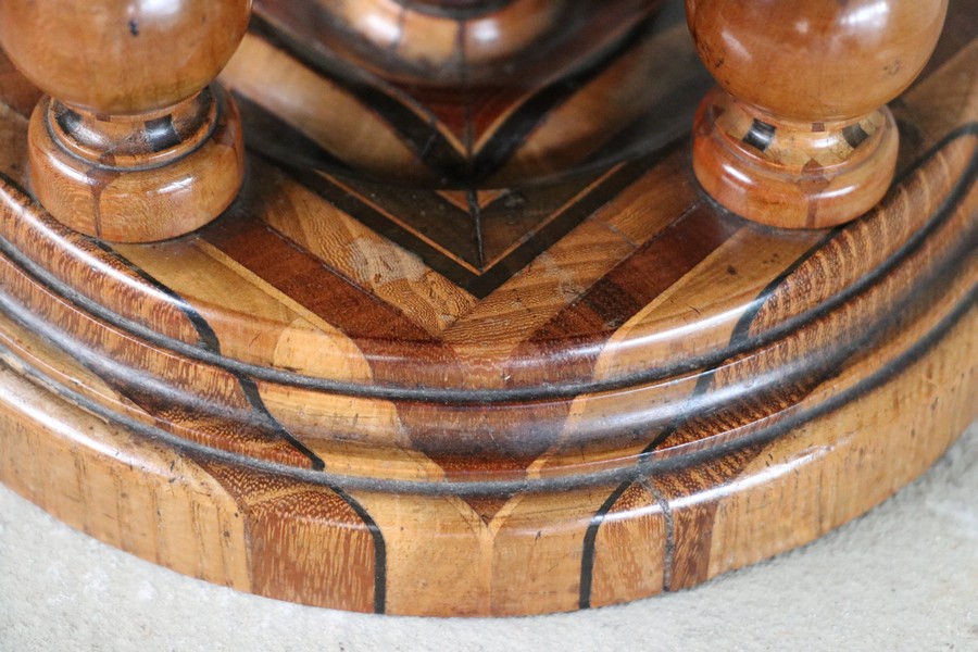 Beautiful inlay with lots of types of wood, a true piece of art!